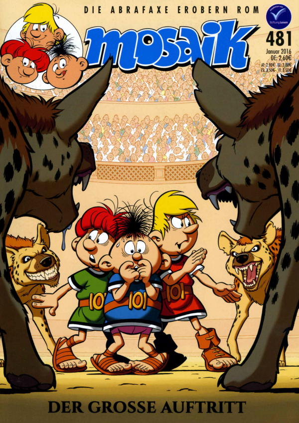 Sonstiges: Große MOSAIK-Titelumfrage 2015 (S.19); Latein rockt! (S.26/27); Die Abrafaxe im Extavium (S.28/29); Das magische Auge (S.30); Impressum (S.31)