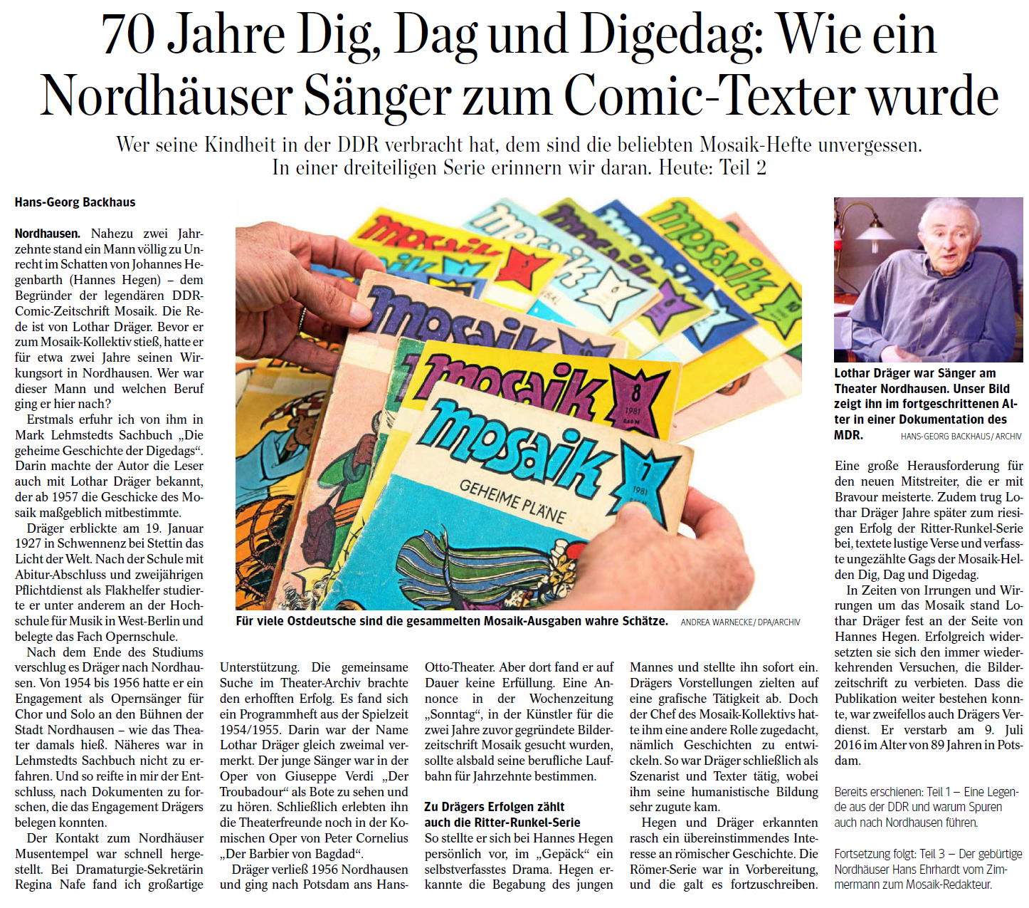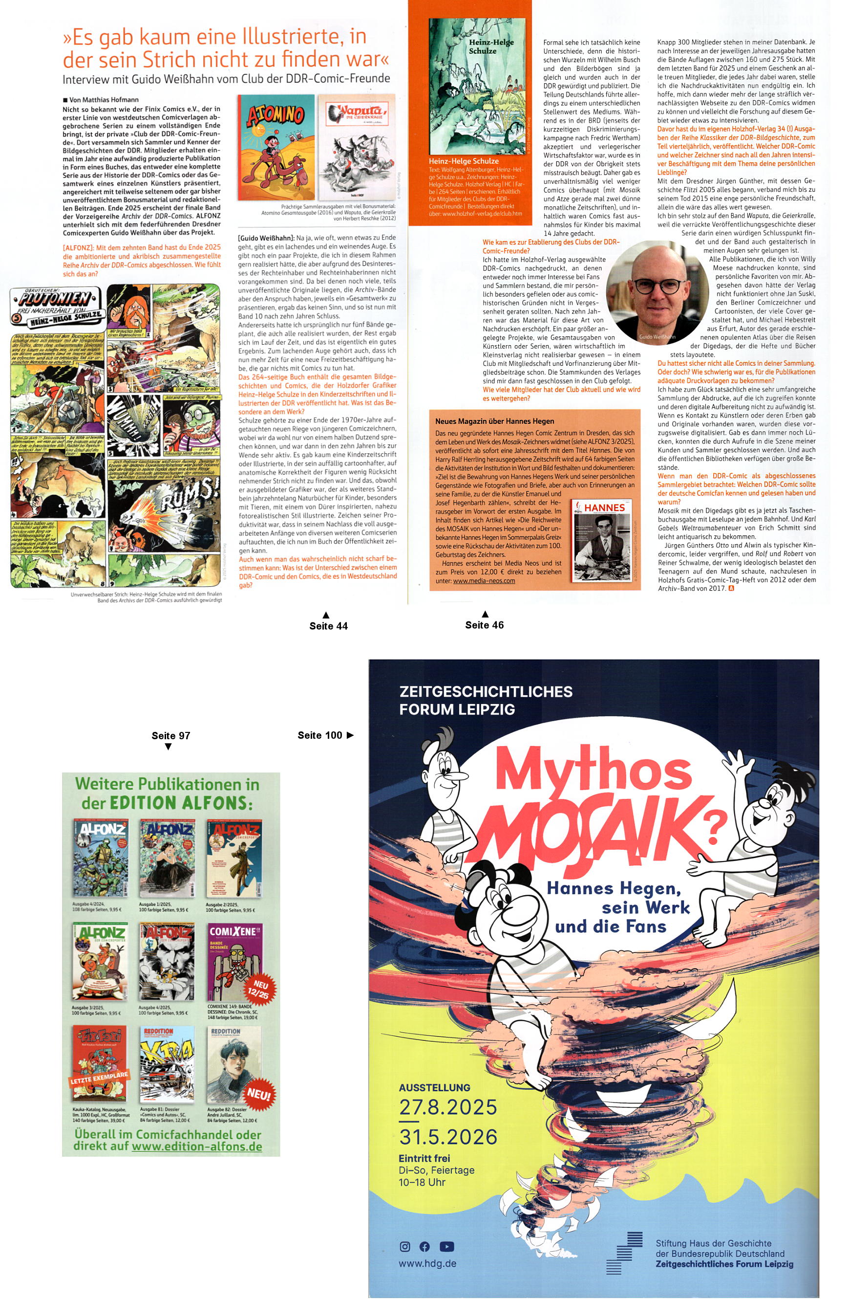Aus Mosaikfan-Sicht besonders interessant sind ein zweiseitiges Interview mit Guido Weißhahn („Club der DDR-Comic-Freunde“),