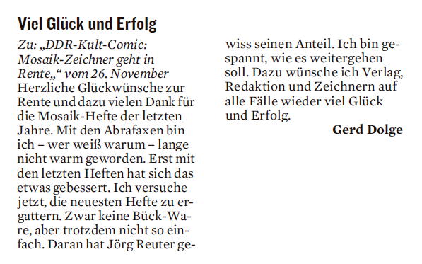 Thomas Möller, Vorsitzender des Mosaik- und Comic-Clubs Neubrandenburg, gehört. Darüberhinaus veröffentlicht das Blatt