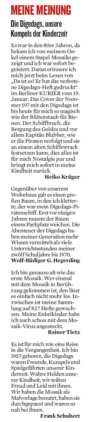 Berliner Kurier, 28.01.2026, „Meine Meinung: Die Digedags, unsere Kumpels der Kinderzeit“