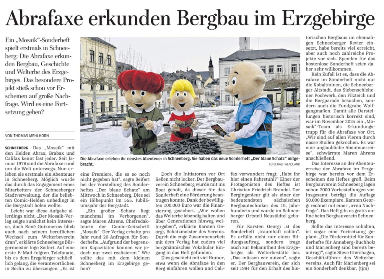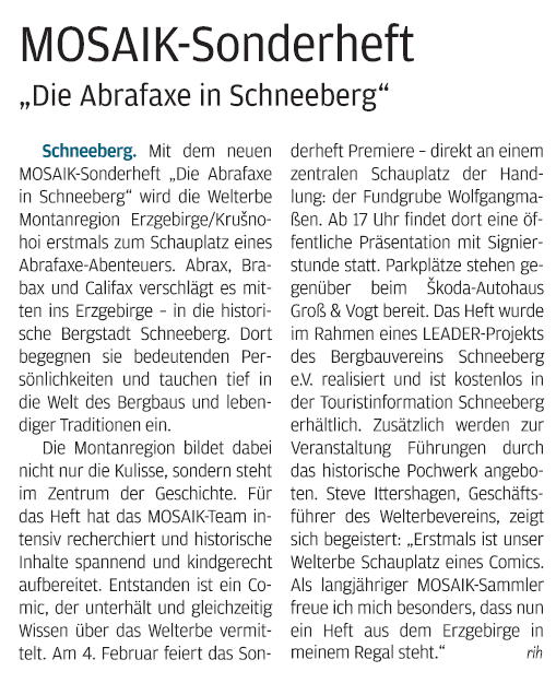 Blick Aue, 30.01.2026, „MOSAIK-Sonderheft ‚Die Abrafaxe in Schneeberg‘“ von Rico Hinkel-Schollbach, Seite 3