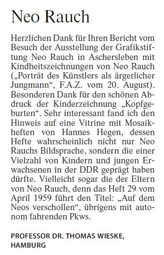 Frankfurter Allgemeine, 11.09.2025, „Briefe an die Herausgeber: Neo Rauch“ von Prof. Dr. Thomas Wieske, Seite 25
