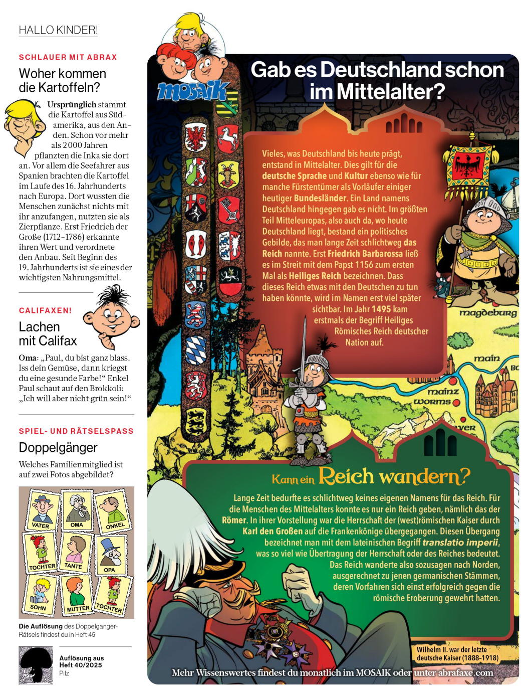 zu finden. Dazu werden Rezensionen von Comics, Filmen, Belletristik und Sachbüchern, die für MOSAIK-Fans interessant