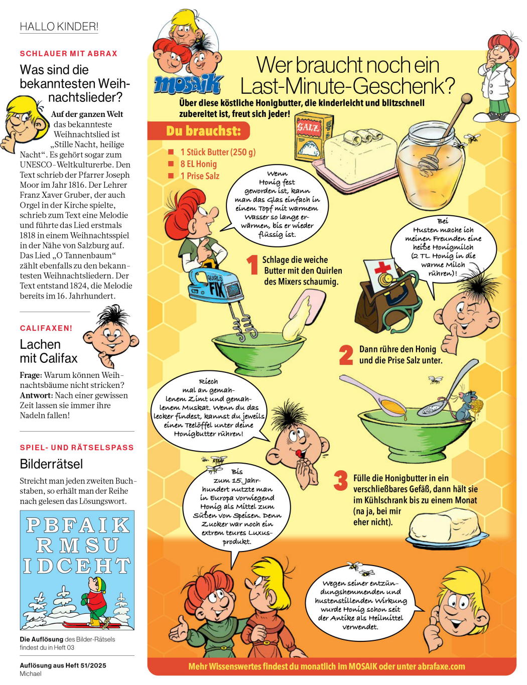 Die SUPERillu Nr.52 vom 17. Dezember 2025 enthält auf den Kinderseiten HALLO KINDER! kein Abrafaxe-Material,