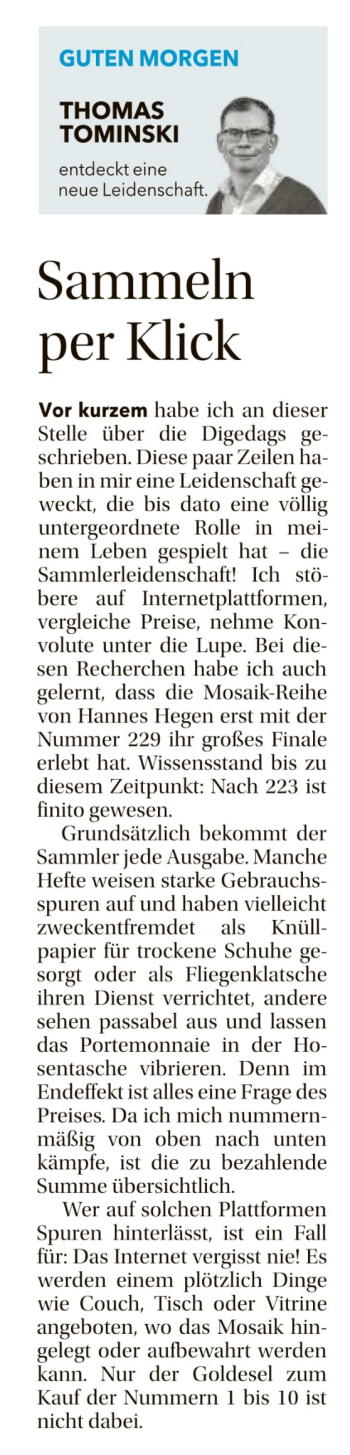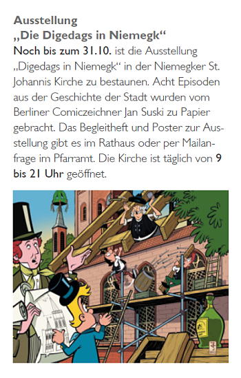 Mosaik-Bezug haben ein Bericht über die Digedags-Ausstellungseröffnung in Berlin-Marzahn sowie die Beiträge
