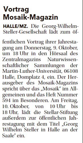 Bad Windsheimer ist, einen öffentlichen Abendvortrag zu dem Thema MOSAIK Nr. 594: Georg Wilhelm Steller als Comic-Star