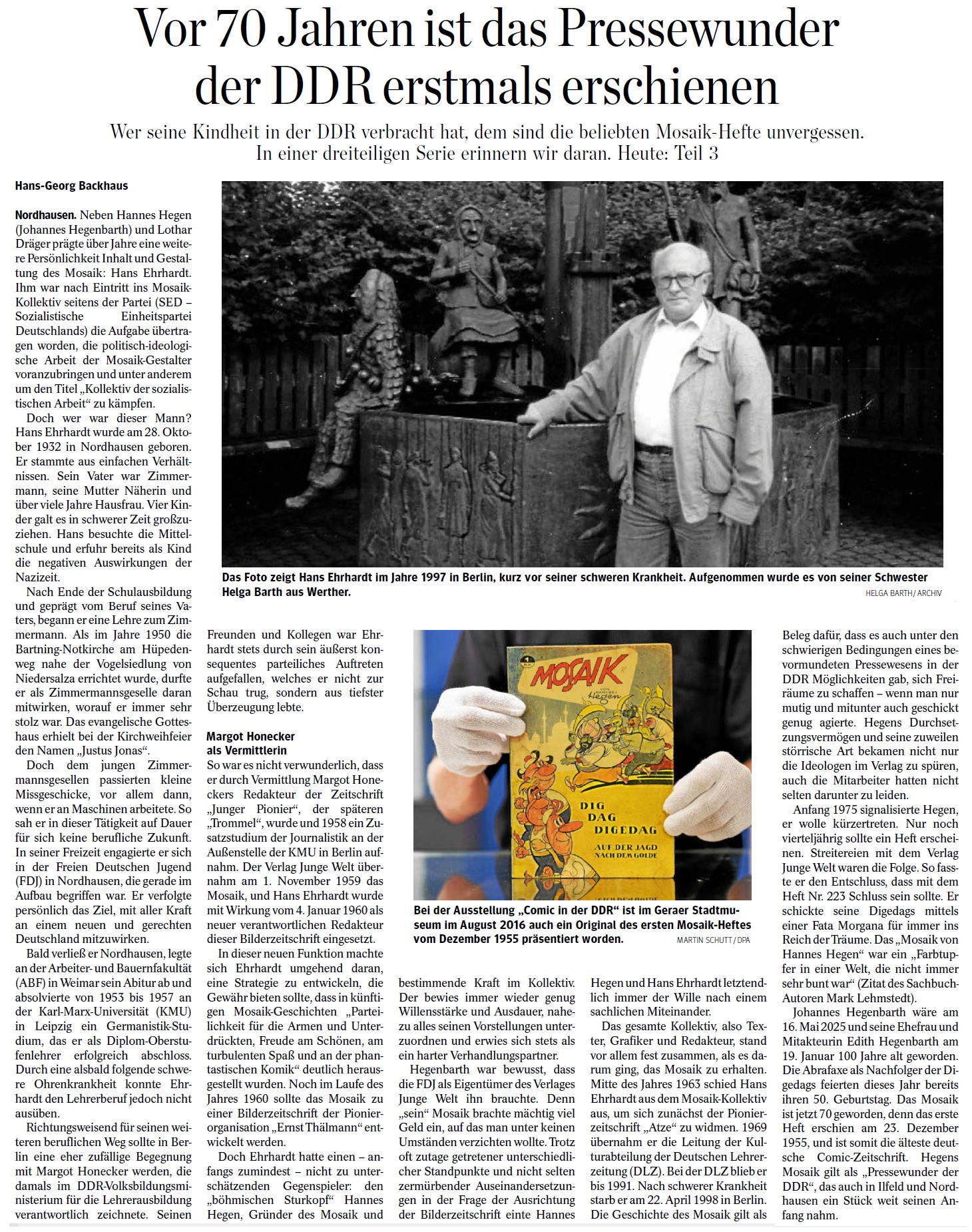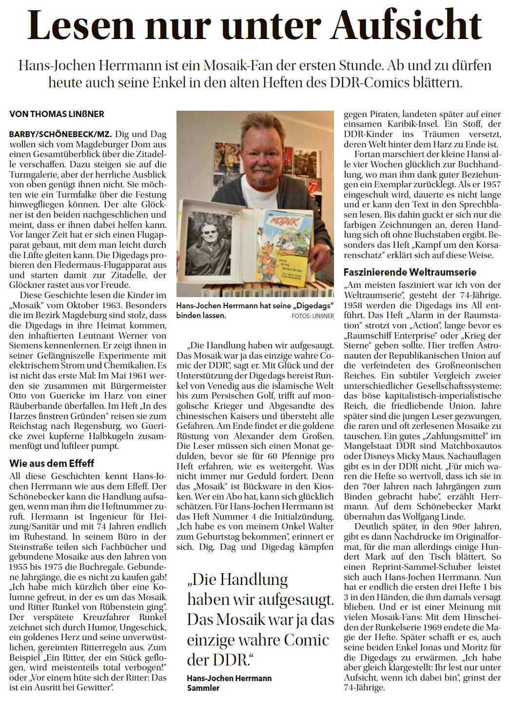 Das in der Schönebecker Volksstimme vom 25. Oktober 2025 veröffentlichte Porträt des MOSAIK-Sammlers Hans-Jochen Herrmann