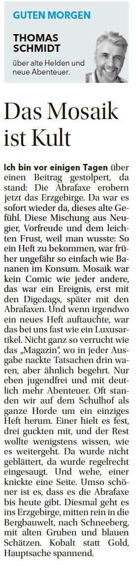 über alte Helden und neue Abenteuer. Anlässlich eines Artikels über das Abrafaxe-Heft aus dem Erzgebirge