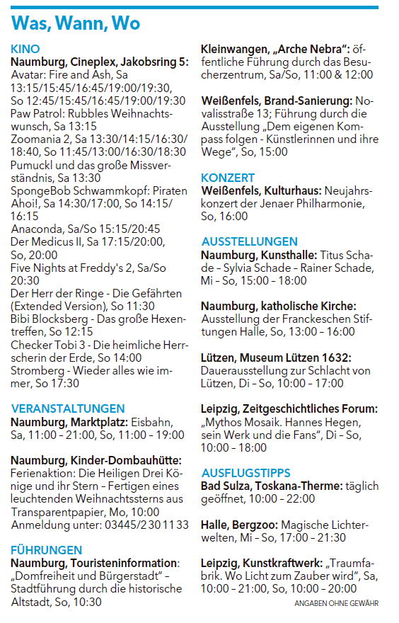In der Ausgabe Naumburger Tageblatt der Mitteldeutschen Zeitung vom 17. Dezember 2025 wurde in der Rubrik