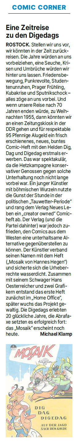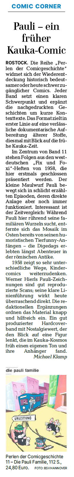 Ostsee-Zeitung, 15.12.2025, „Comic-Corner: Pauli – ein früher Kauka-Comic“ von Michael Klamp, Seite 23