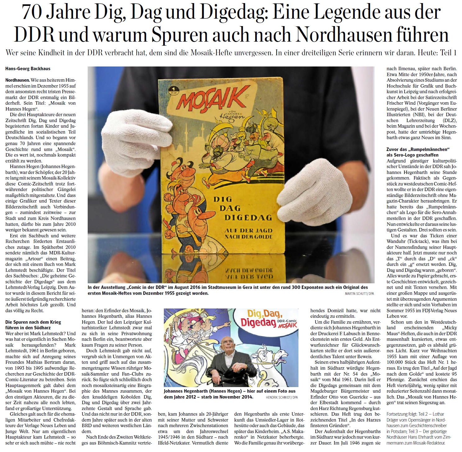 Sonderausstellung Mythos Mosaik? Hannes Hegen, sein Werk und die Fans aufgelistet.