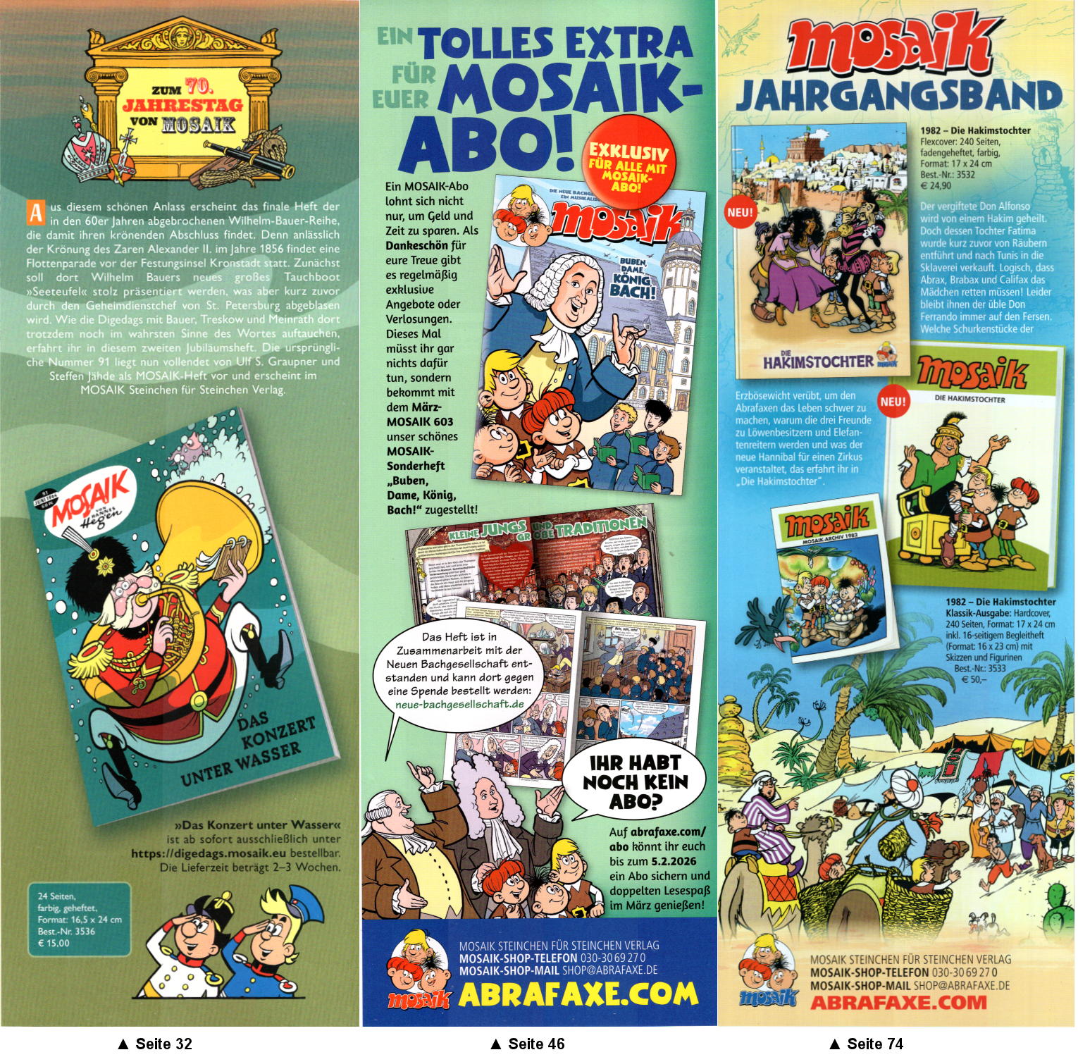 MOSAIK-Bezug haben drei halbseitige Anzeigen für das Mosaik 91 Das Konzert unter Wasser, für das Sonderheft