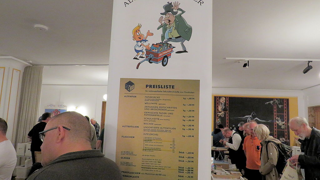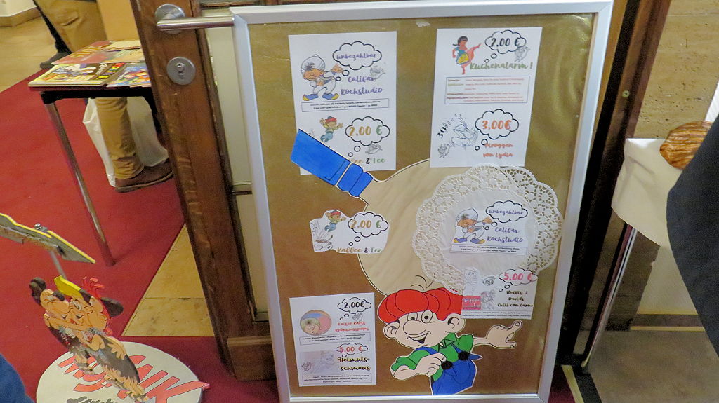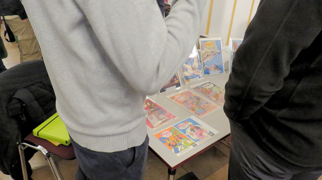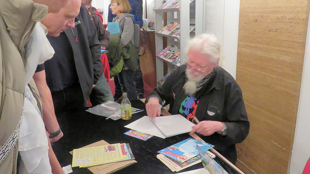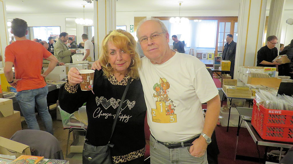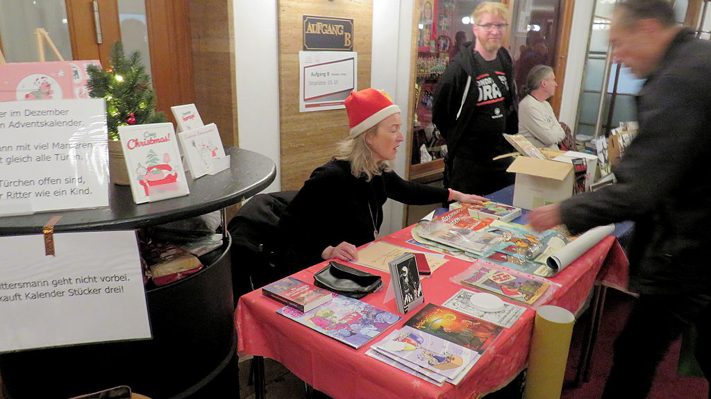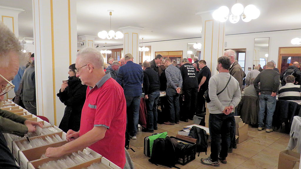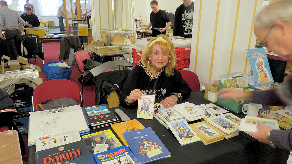 Die 30. Mosaik-Börse machte der Jubiläumszahl alle Ehre, denn auch die anderen Jubiläen des Mosaik-Universums wurden ausgiebig gefeiert. Deshalb war es zu erwarten, dass erneut eine Rekordzahl an Besuchern in das Kulturhaus Wolfen drängte. Wie immer gab es neben den Angeboten an Mosaik-Heften und -Büchern zahlreiche neue Magazine der Fanclubs, dazu neue Ausgaben bzw. Updates der Digedags- und Abrafaxe-Kataloge sowie ein reichhaltiges Sortiment des Mosaik Steinchen für Steinchen Verlags. An letzterem Stand war der künstlerische Leiter Jörg Reuter immer dicht umlagert.