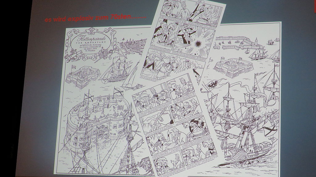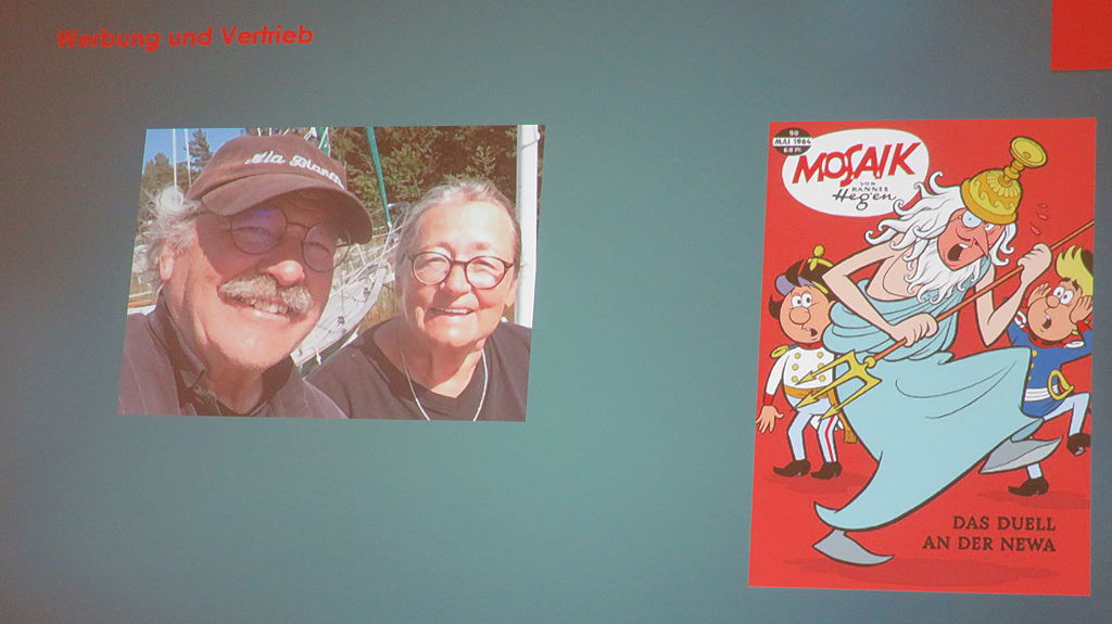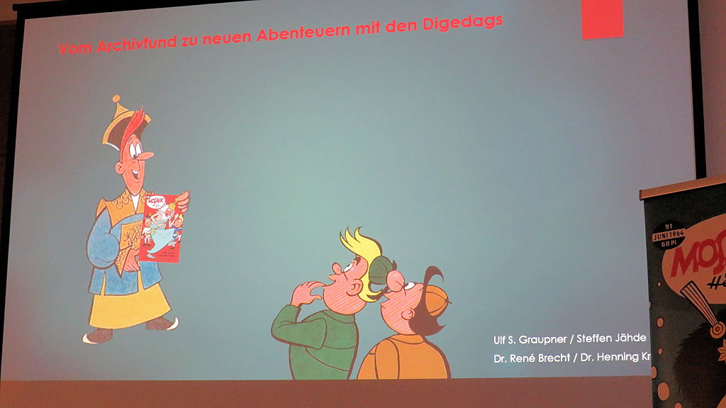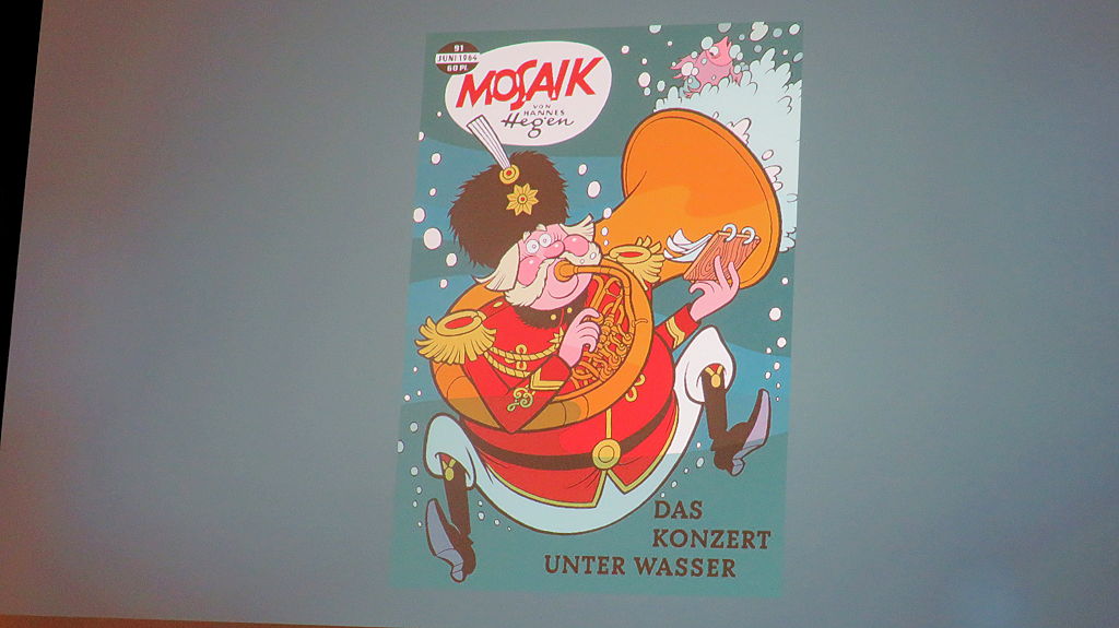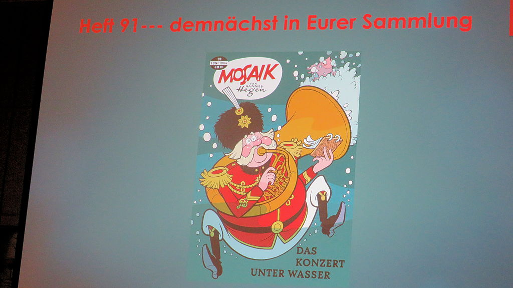 Der absolute Höhepunkt war der Vortrag zu den zwei neuen Heften des Mosaik von Hannes Hegen, bei dem erstmals das Titelbild