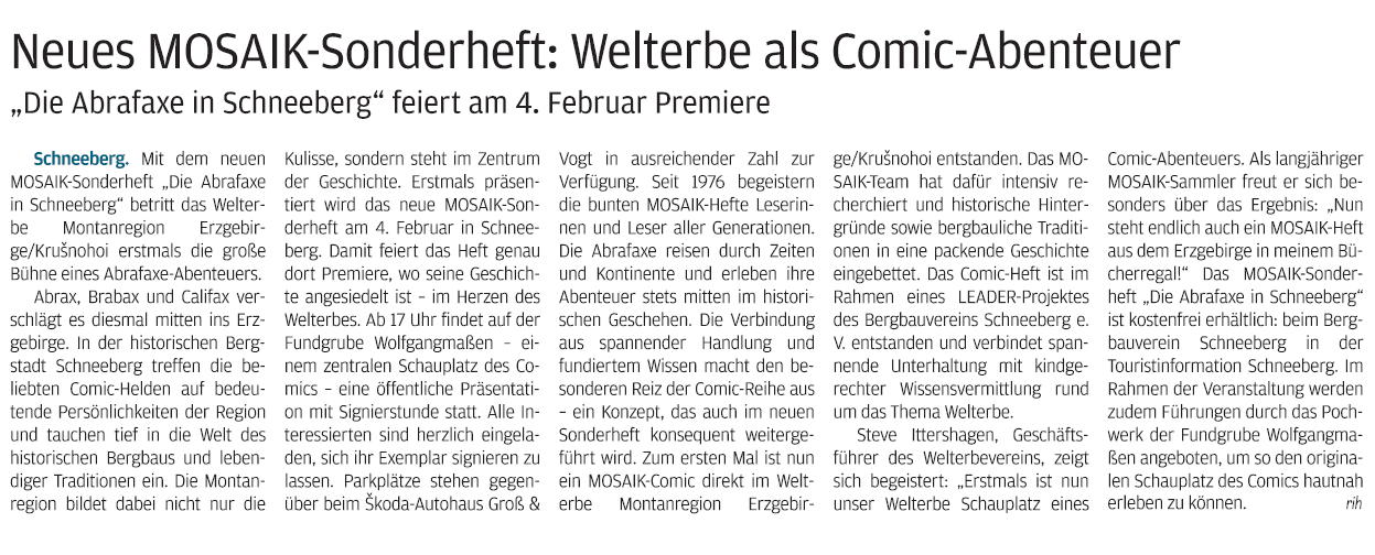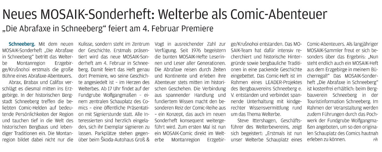 Am 4. Februar 2026 wurde in Schneeberg in der Fundgrube Wolfgangmaßen das neue Abrafaxe-Sonderheft