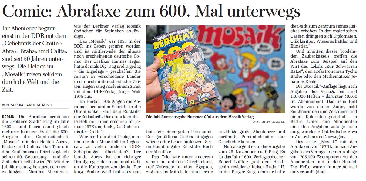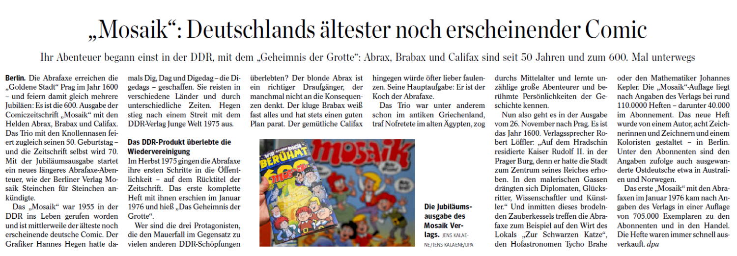 Berliner Morgenpost, 19.11.2025, „‚Mosaik‘: Deutschlands ältester noch erscheinender Comic“ von Sophia-Caroline Kosel, Seite [13]