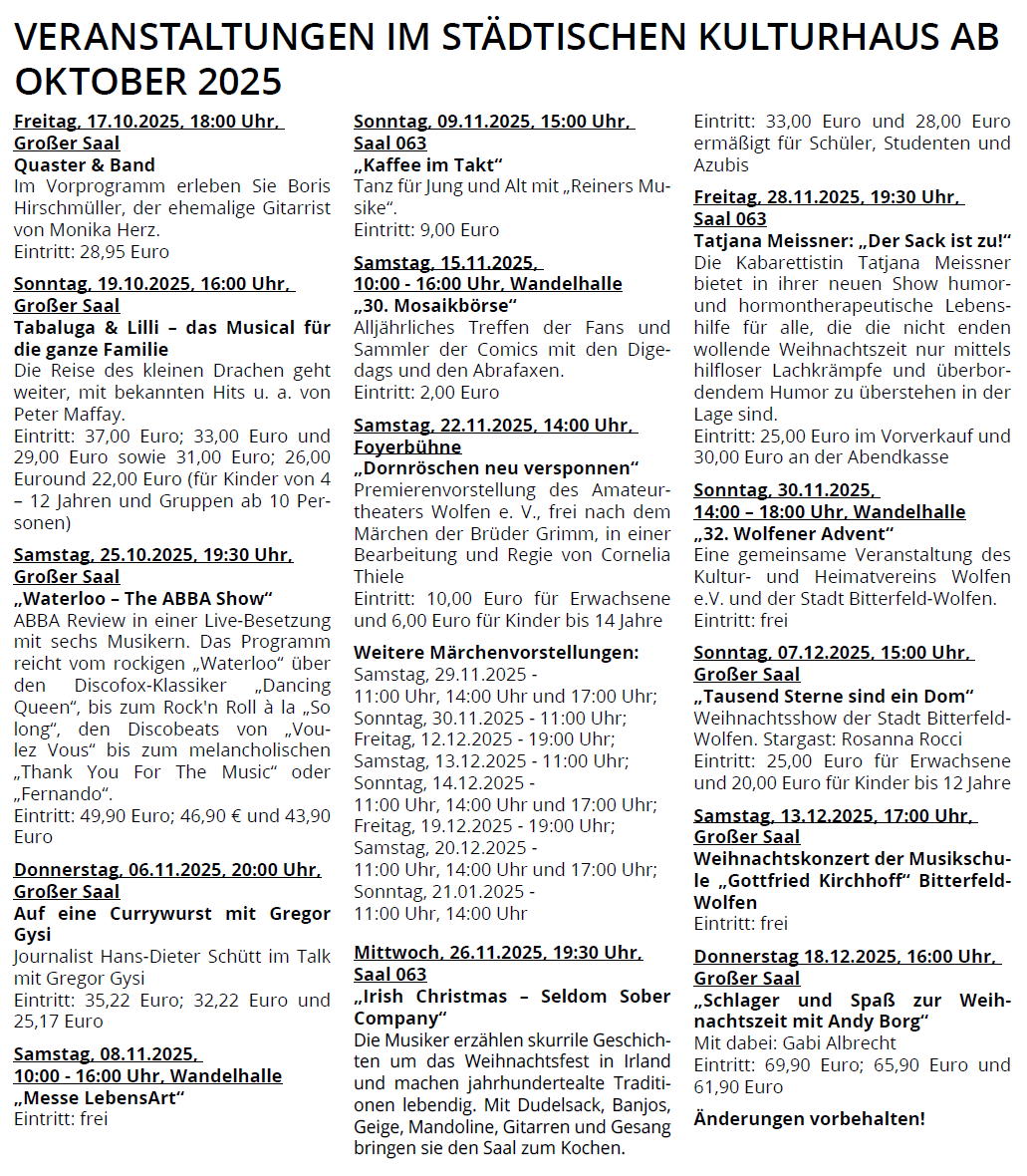 „Veranstaltungen im Städtischen Kulturhaus ab Oktober 2025“, Seite 10