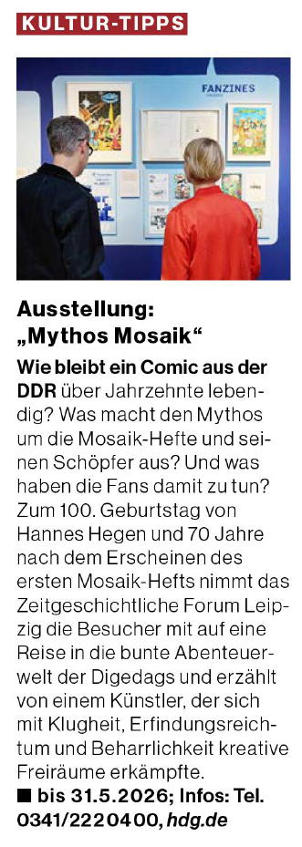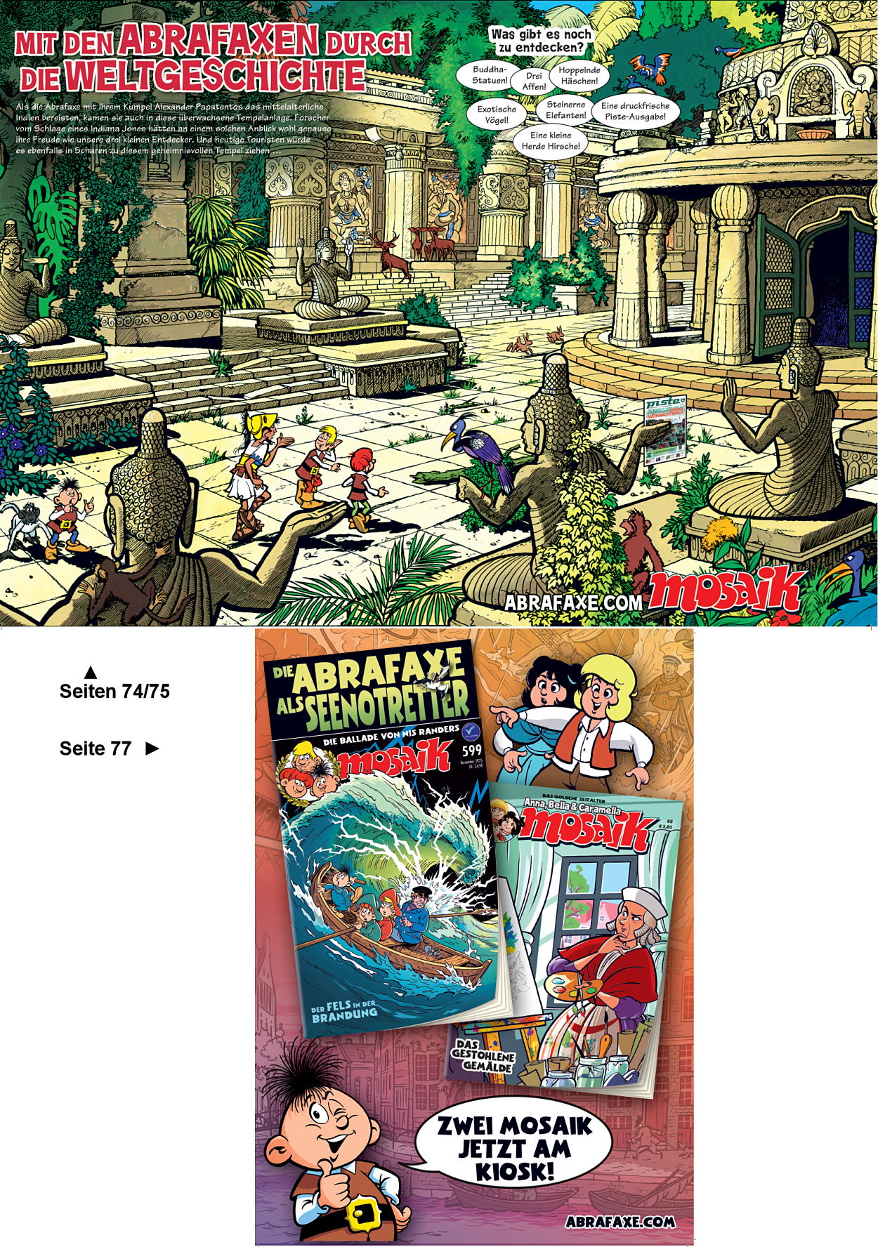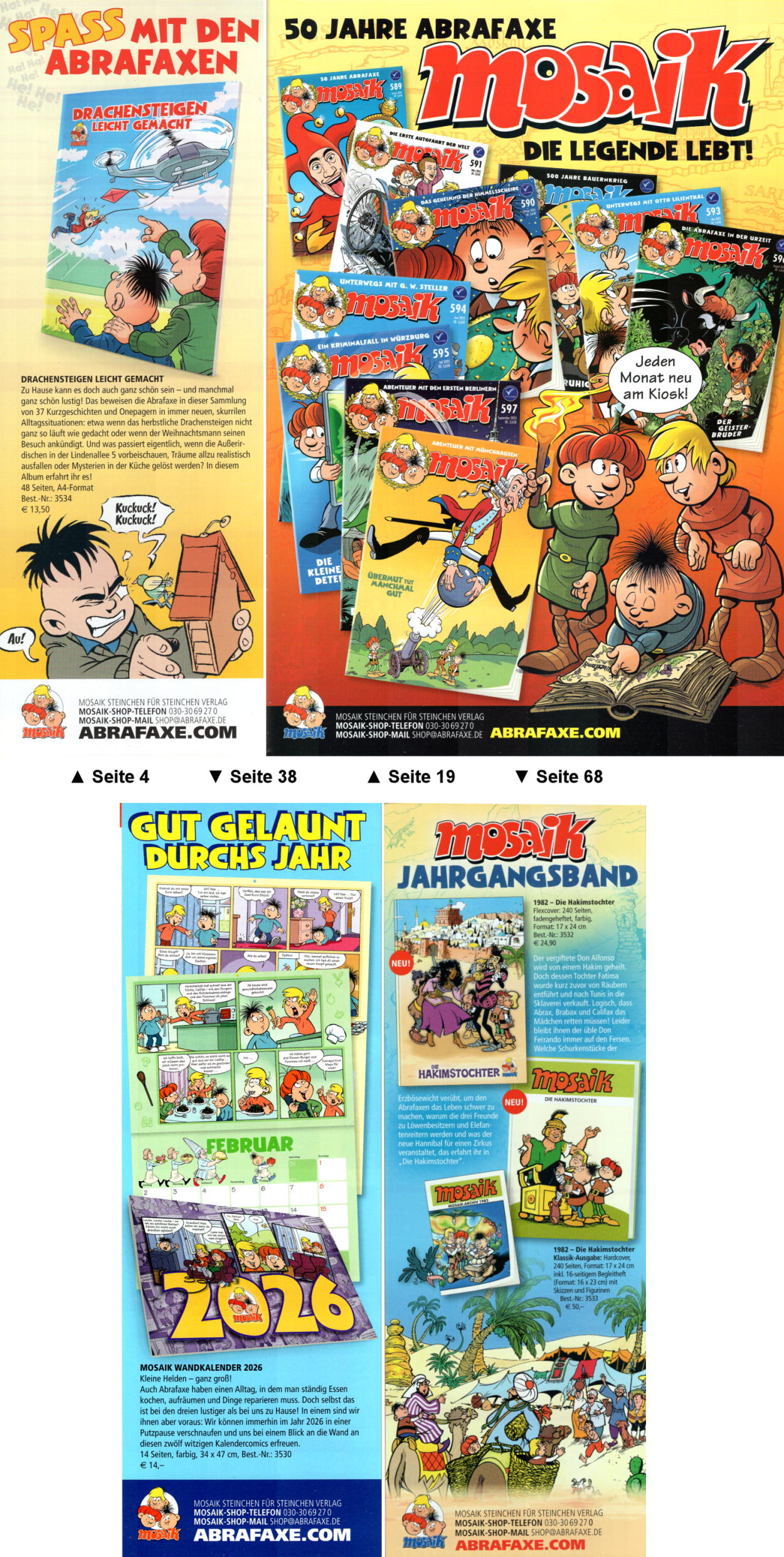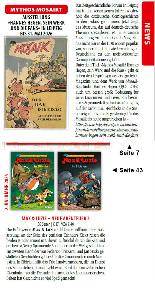 zu finden. Dazu werden Rezensionen von Comics, Filmen, Belletristik und Sachbüchern, die für MOSAIK-Fans interessant