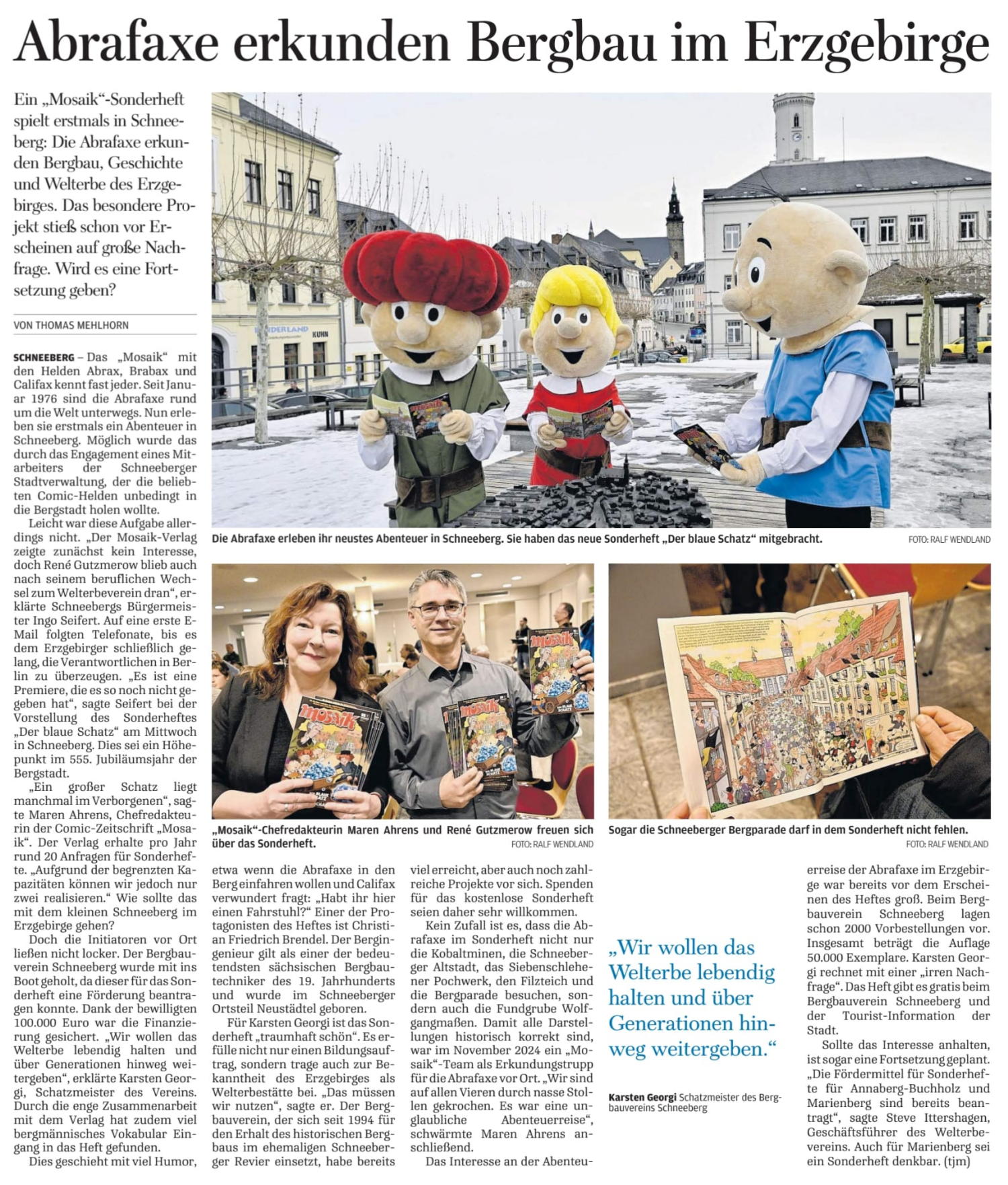 Freie Presse, 06.02.2026, Ausgabe Marienberg, „Abrafaxe erkunden Bergbau im Erzgebirge“ von Thomas Mehlhorn, Seite 10