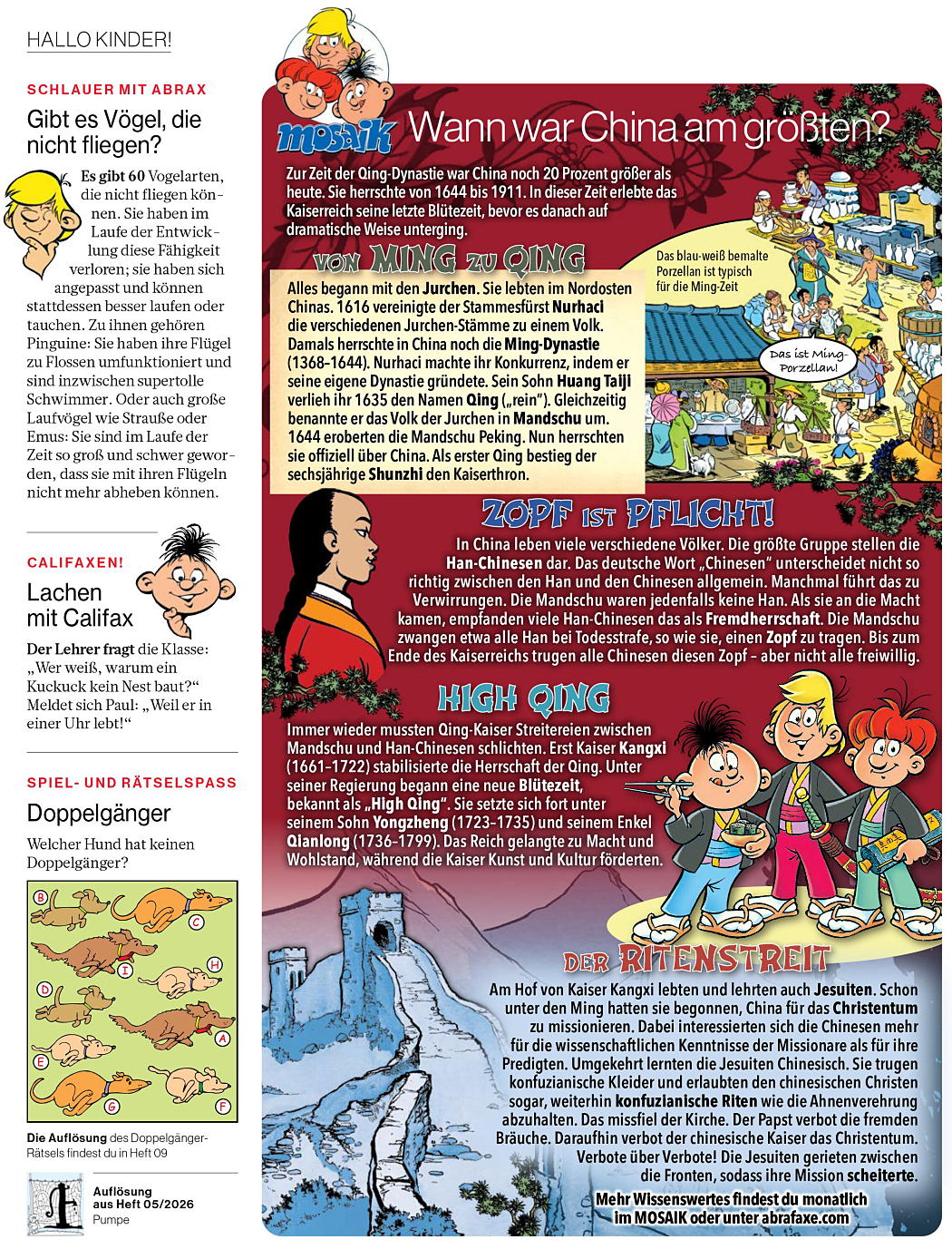 Daneben werden die Rubriken Schlauer mit Abrax: Gibt es Vögel, die nicht fliegen?