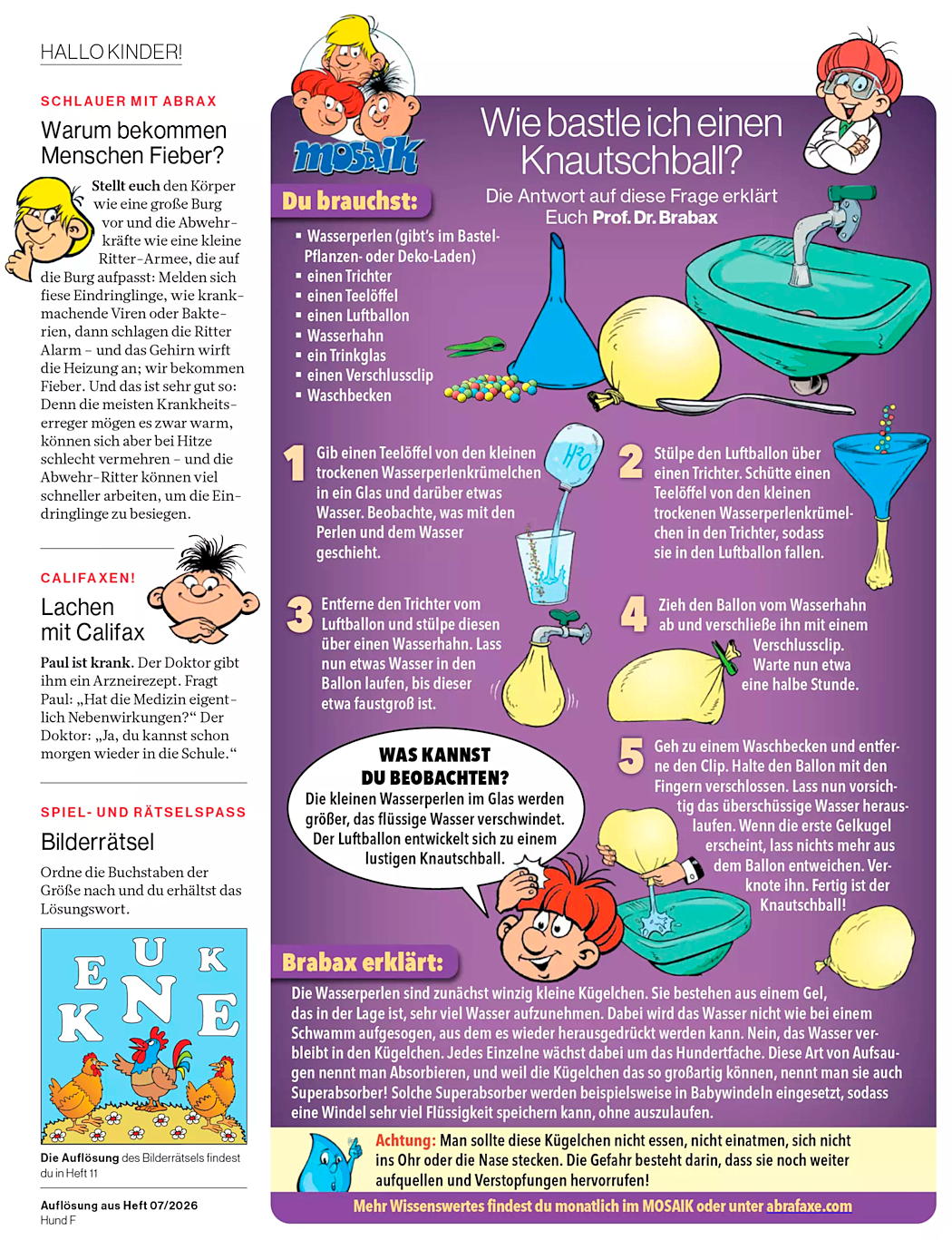 Daneben werden die Rubriken Schlauer mit Abrax: Warum bekommen Menschen Fieber?
