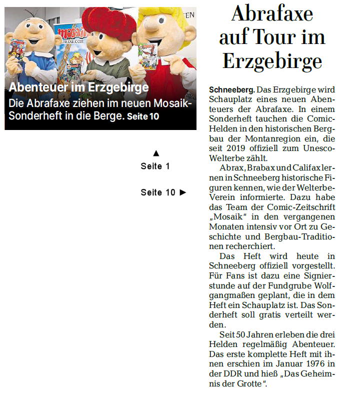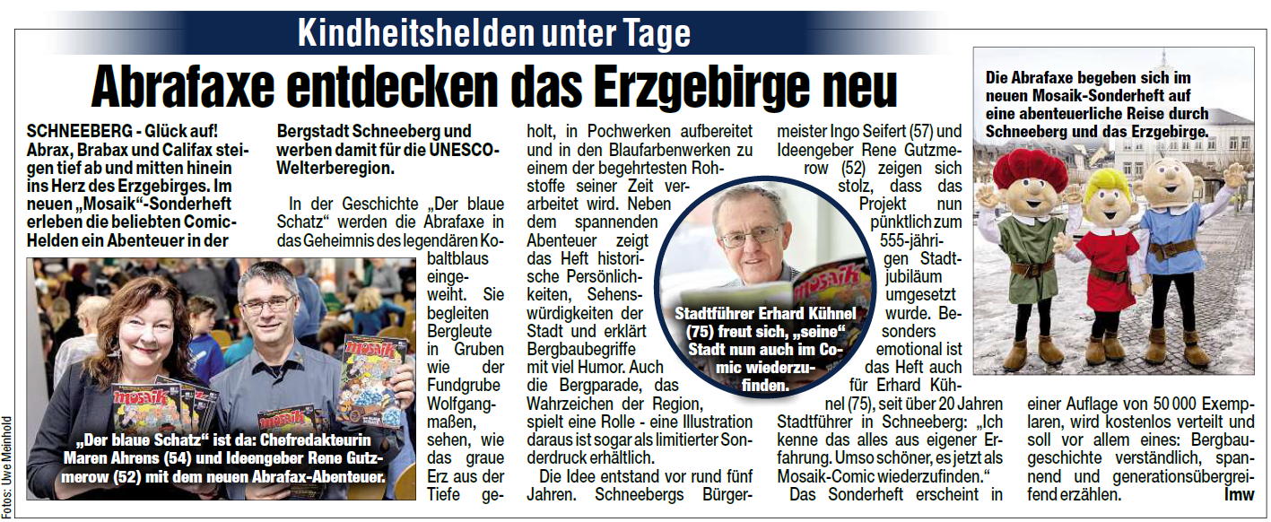 Unter dem Titel Mosaik-Abenteuer in Schneeberg – Die Abrafaxe unter Tage