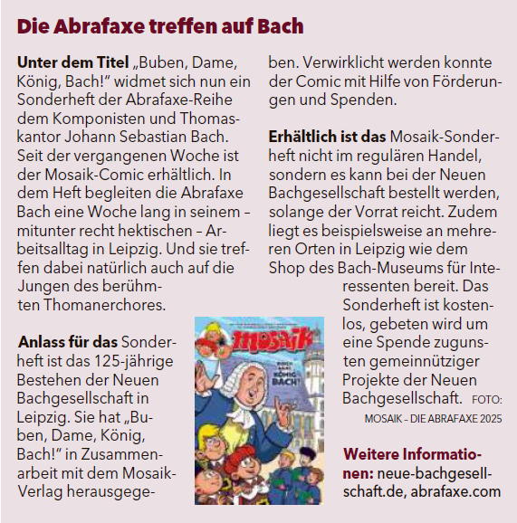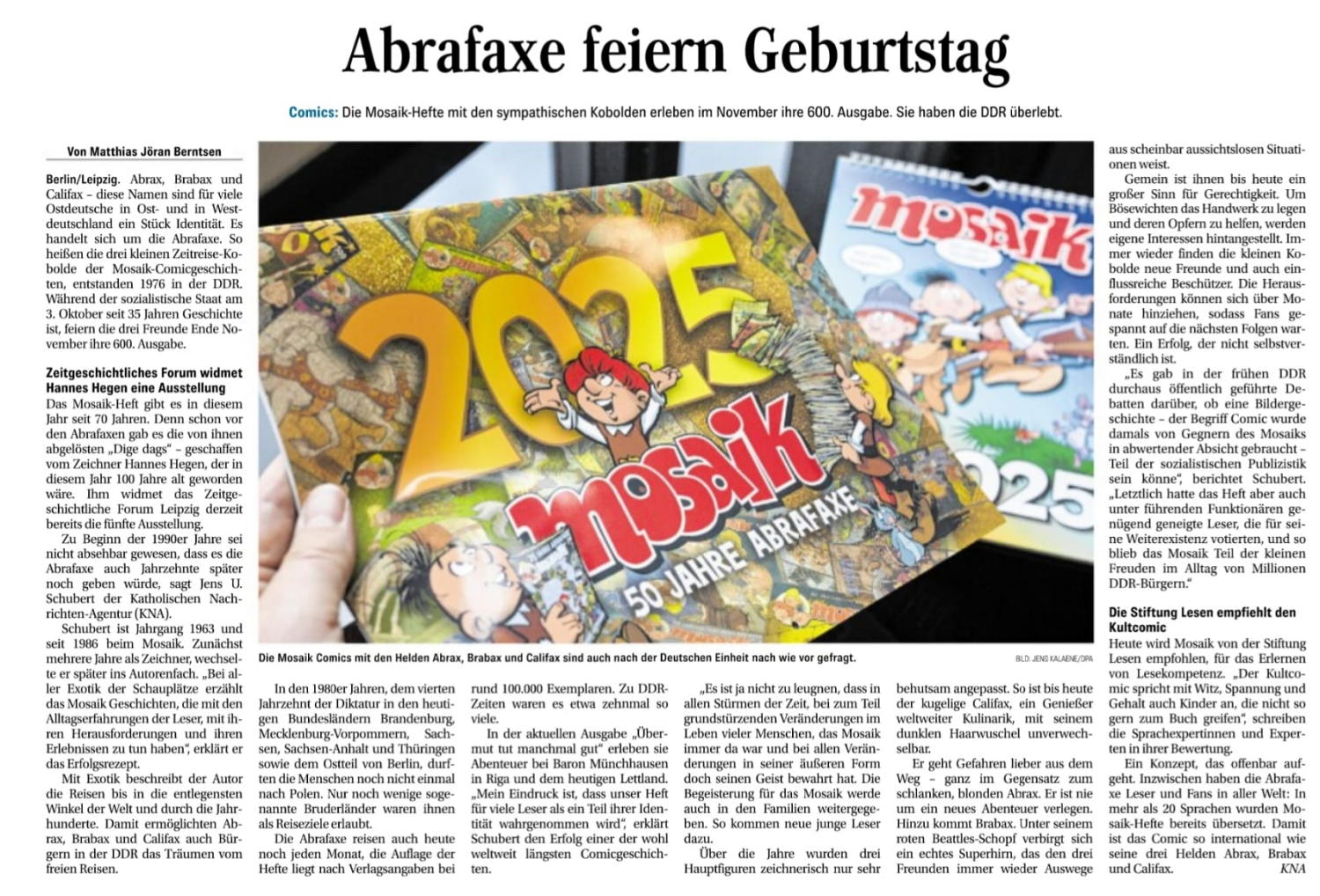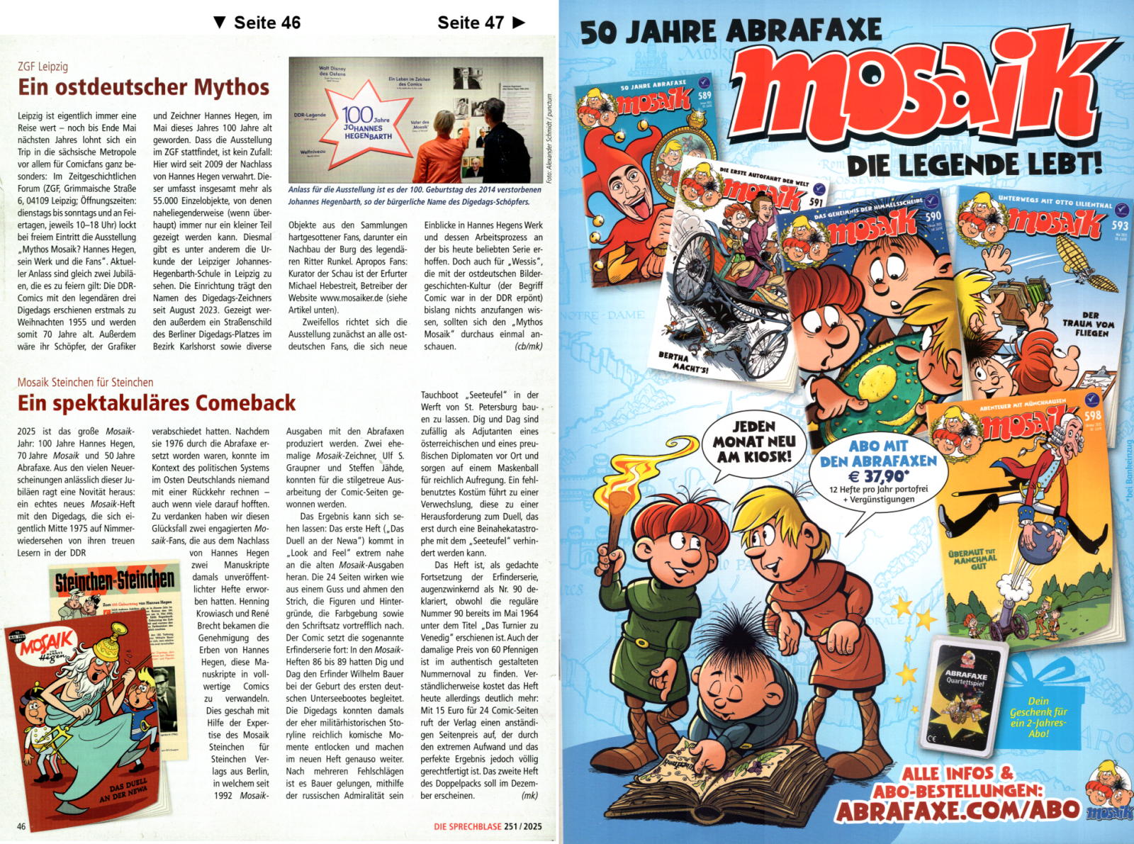Ein ausführlicher Artikel in der Leipziger Volkszeitung vom 15. Oktober 2025 beschäftigte sich mit dem neuen MOSAIK-Sonderheft