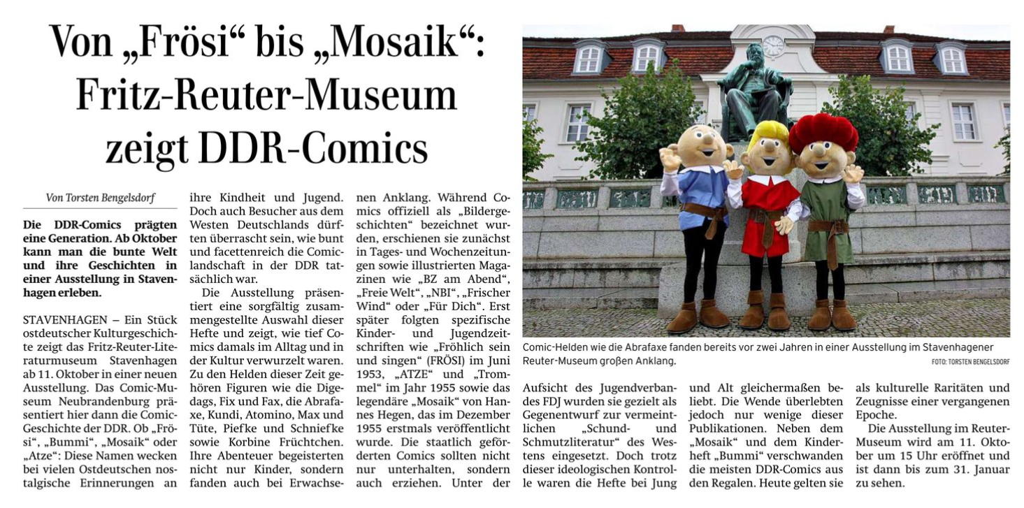 Seenplatte / Mecklenburg-Vorpommern) die Ausstellung Die Comicgeschichte der DDR von 1945 – 1990