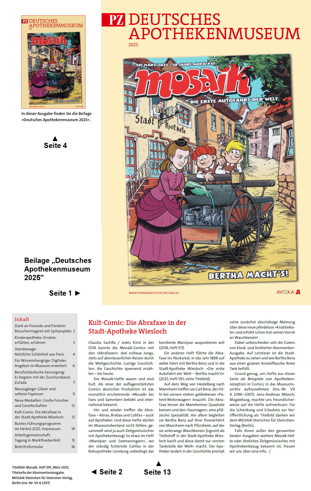 Beilage „Deutsches Apothekenmuseum 2025“, „Kult-Comic: Die Abrafaxe in der Stadt-Apotheke Wiesloch“