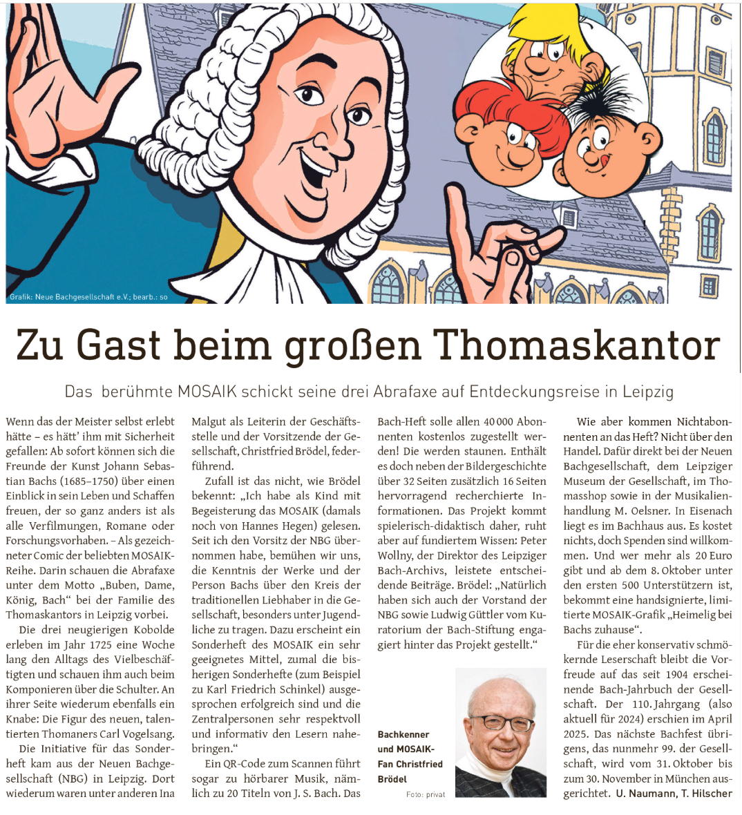 für Steinchen Verlag ein MOSAIK-Sonderheft heraus. Es beschäftigt sich mit Bachs Wirken als Thomaskantor in Leipzig.