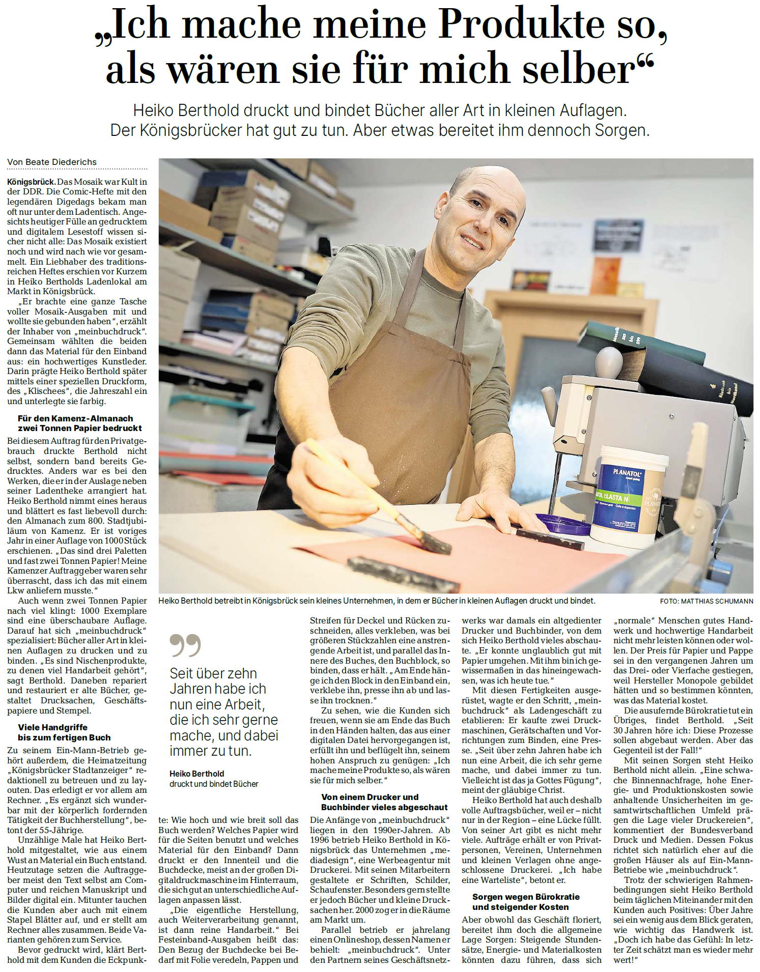 des Druckers und Buchbinders Heiko Berthold aus Königsbrück (Landkreis Bautzen / Sachsen). Der Inhaber von