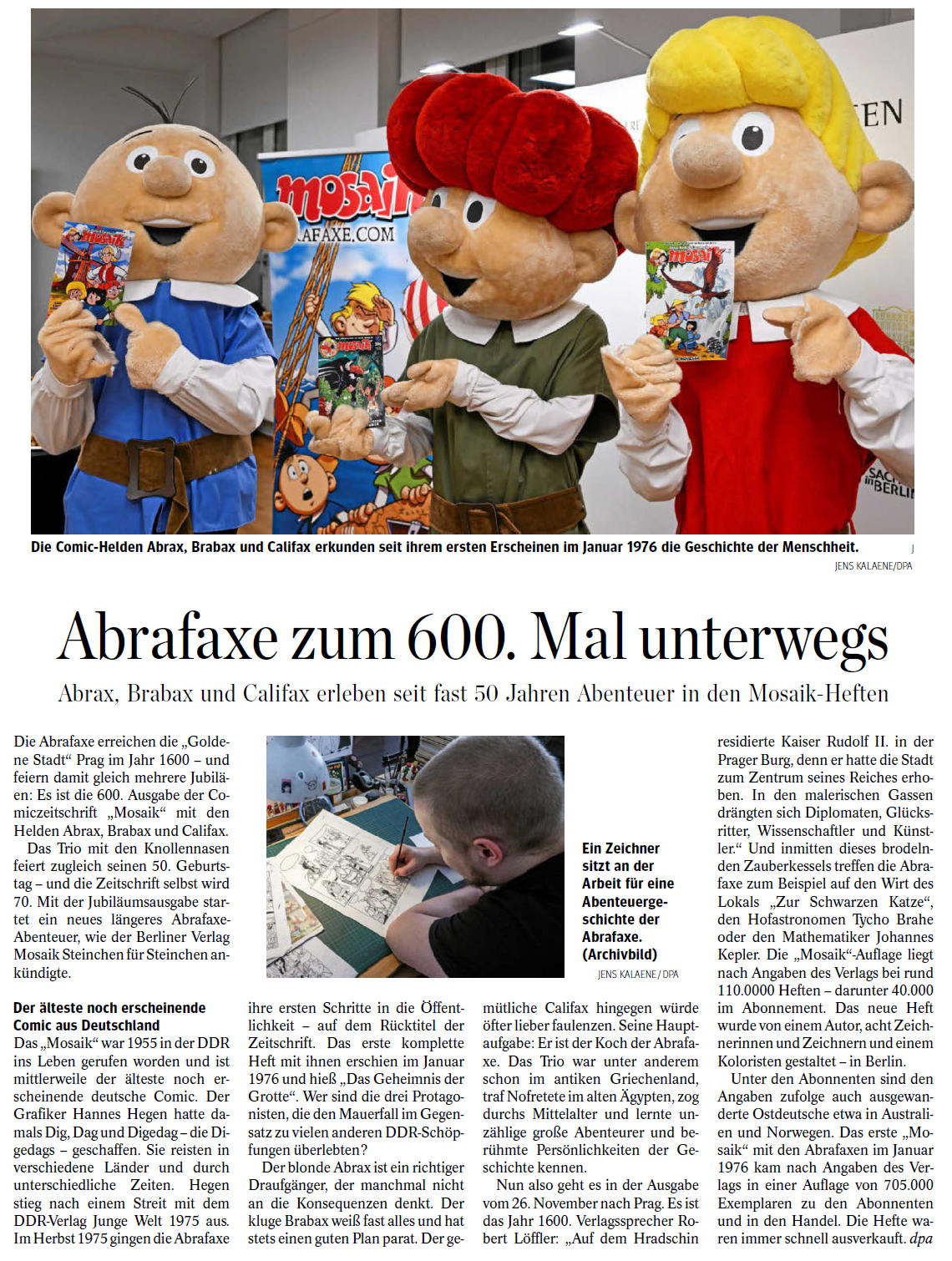 Mitteldeutsche Zeitung, 19.11.2025, „Jubiläum für die Abrafaxe“ von Sophia-Caroline Kosel, Seite 3