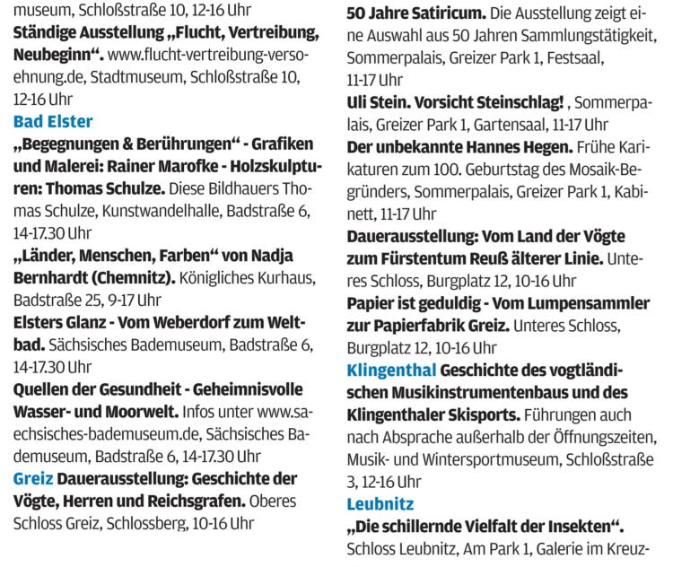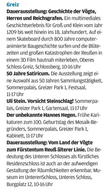 viele weitere Ausstellungen, Aufführungen, Gastspiele und ähnlichem wurde auch erwähnt: