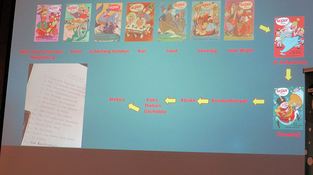 Der absolute Höhepunkt war der Vortrag zu den zwei neuen Heften des Mosaik von Hannes Hegen, bei dem erstmals das Titelbild